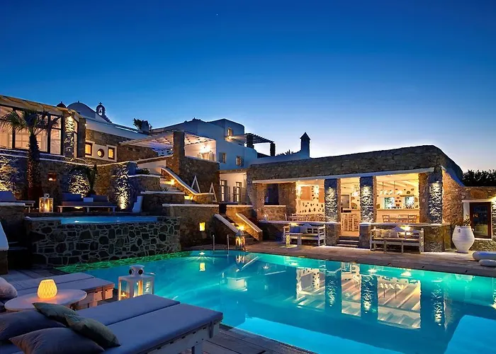 El confortable hotel Kallos Of Mykonos - Previous Leonis Summer Houses Ornos, de 4 estrellas, ofrece tumbonas y patio y a la ciudad. Además, se encuentra a una distancia de 550 metros de la Playa de Ornos. El hotel cuenta con un aparcamiento en las instalaciones y con una piscina exterior.